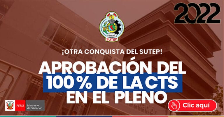 Exigimos al presidente Castillo la promulgación de la Ley que reconoce el Pago del 100 % de la CTS para los maestros y maestras del Perú. Se hace justicia. Ahora, un maestro dejará de percibir s/ 10 mil soles por 30 años de servicios. ¡El SUTEP ha conquistado los s/ 72 mil para un maestro de primera escala!