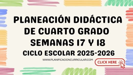 Planear implica anticipar el aprendizaje y reflexionar sobre la práctica docente 🌱📘. La planeación didáctica de cuarto grado para las semanas 17 y 18 representa una oportunidad para fortalecer la enseñanza y acompañar el desarrollo académico del alumnado de manera consciente 📚❤️.