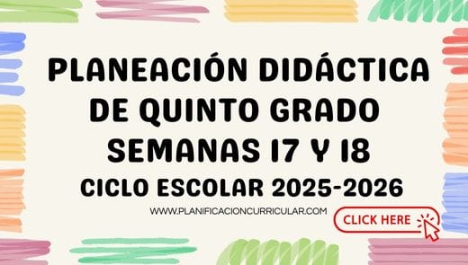 Planear implica anticipar el aprendizaje y reflexionar sobre la práctica docente 🌱📘. La planeación didáctica de quinto grado para las semanas 17 y 18 representa una oportunidad para fortalecer la enseñanza y acompañar el desarrollo académico del alumnado de manera consciente 📚❤️.